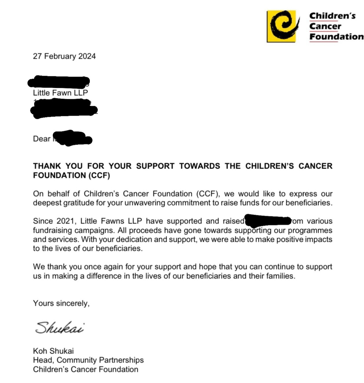 One of the goals of Little Fawns is to be able to give back to the community. We believe in giving back as it will make a difference to someone's life. Even the smallest help goes a long way.